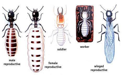 Termites are small insects that eat wood and live in colonies. The colony is headed by a king and queen who mate and produce more termites. Soldier termites defend the colony against invaders and predators. Worker termites search for food and are responsible for feeding and taking care of the king and queen, the young (larvae), and the soldiers. Termites have microscopic organisms (called protozoa) living in their digestive tract that help them to digest wood. Termites are very important in nature because they break down wood and return nutrients to the soil. They become a problem only when they attack our homes and structures.