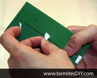 Stick the TermitesDIY Box along termites' mud tunnels or roadway. For extra safety purpose you may choose to stick it more firmly with more tape around the box to avoid box accidently drop caused by human actions. |