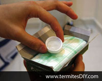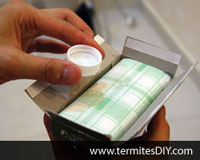 TermitesDIY box is seal tight with shrink plastic to protect the baiting box, remove the plastic and open the bottom of the box. Now you are ready to the next step on setup for the baiting box. |
